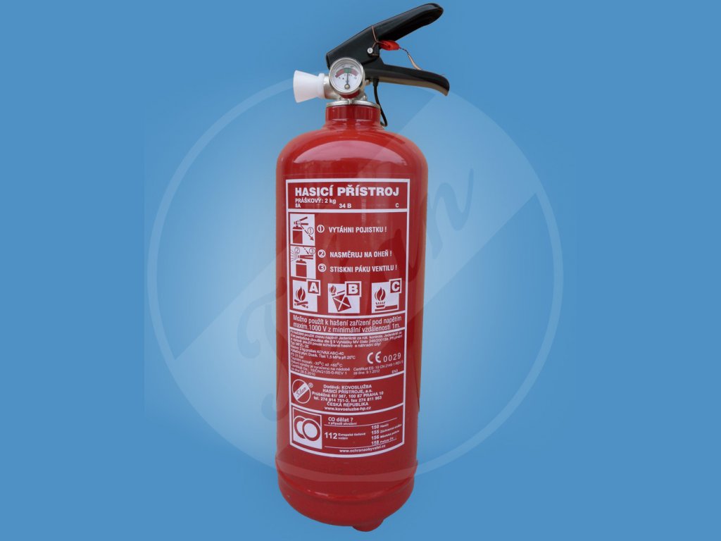 Obsah hasiva 2kg. Hasicí přístroj vhodný pro typy požáru A/B/C.Využití především pro domácnosti a automobily. Hasicí přístroj je pod stálým tlakem, který lze kontrolovat manometrem umístěném na ventilu hasicího přístroje. Hasicí přístroj certifikován dle normy ČSN EN-3. Hasicí přístroj lze použít pro hašení pod napětím do 1000V.